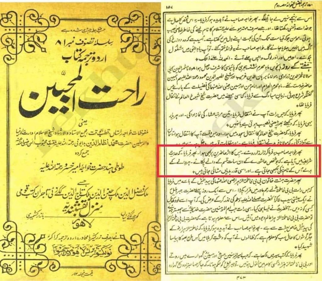 *1.* Rahat ul Muhibbeen, Safa 157,158.