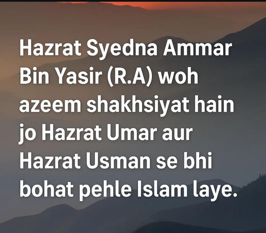 Hazrat Ammar Bin Yasir (RA) Ka Shumaar Jaleel-Ul-Qadr Sahaba-E-Kiram Mein Hota Hai. Aap As-Sabiqoon Al-Awwaloon (Islam Qubool Karne Wale Awaleen Momineen) Mein Se Hain. Aap Ke Walid Hazrat Yasir (RA) Aur Walida Hazrat Sumayyah (RA), Islam Ke Sab Se Pehle Shuhada Hain.