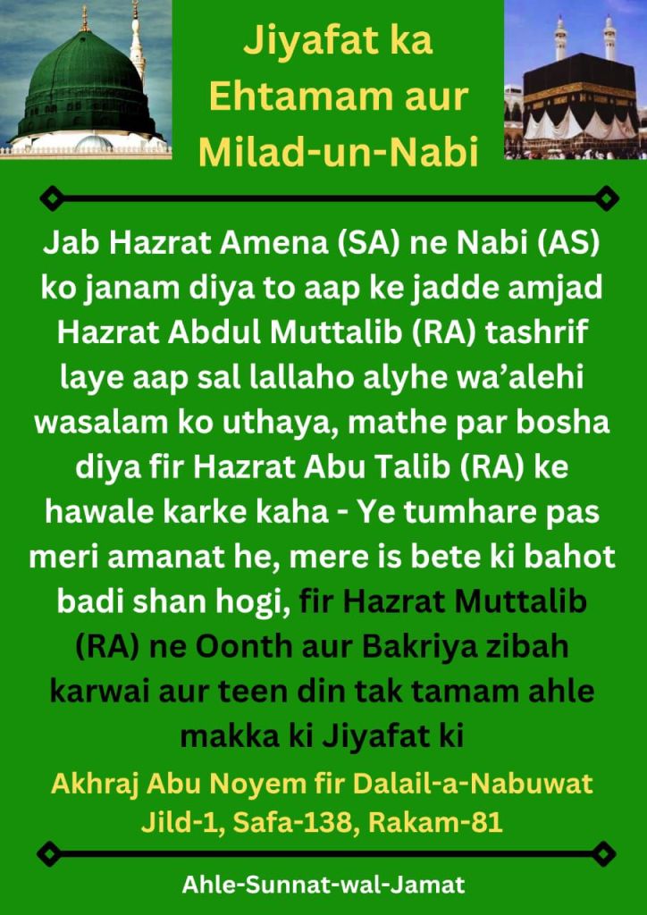 (हुजुर सल्लल्लाहु अलैह व सल्लम का खुद मिलाद कि खुशी मे जानवर ज़िब्हा करके खाना खिलाना )