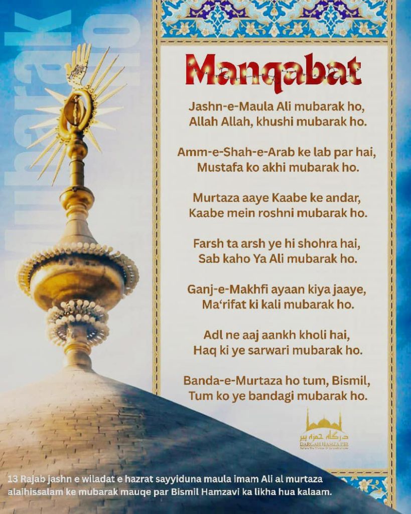 13 Rajjab Jashne Youme Eid e Milaad Maula Ali Tamam Ashiqane Ali Ko Mubarak ❤️✋🏻