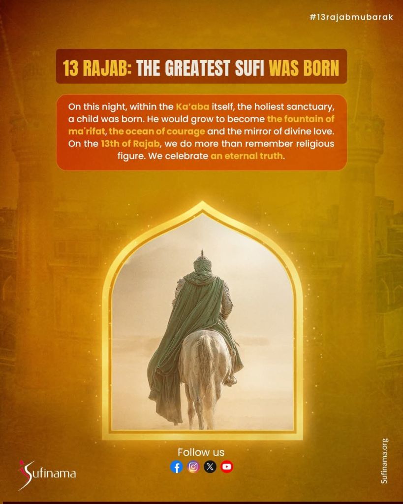 हज़रत मोला अली अलैहिस्सलाम की पैदाईश 13 रजब को जुमा के दिन काबा तुल्लाह के अन्दर हुई थी