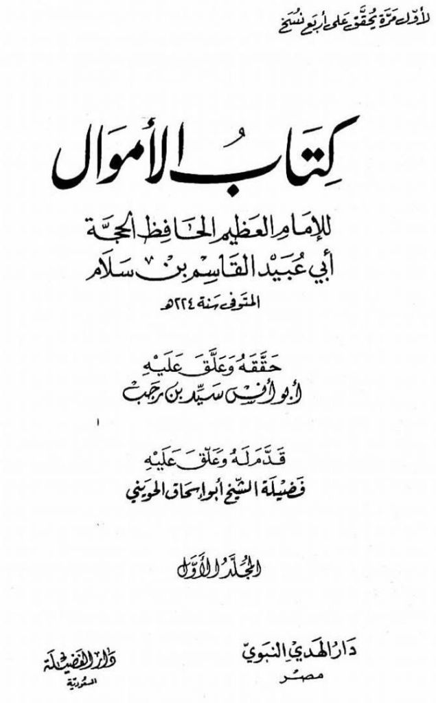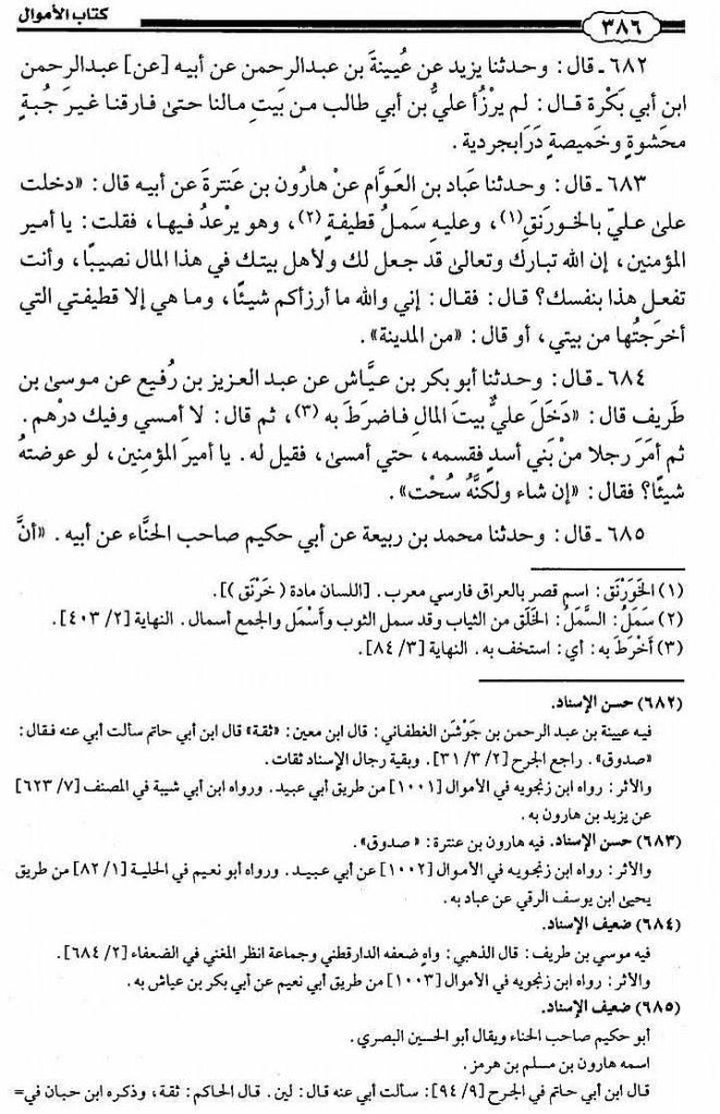 (1) Al-Amwaal — Abu Ubaid, jild 1, safha 386, Hadith number 683