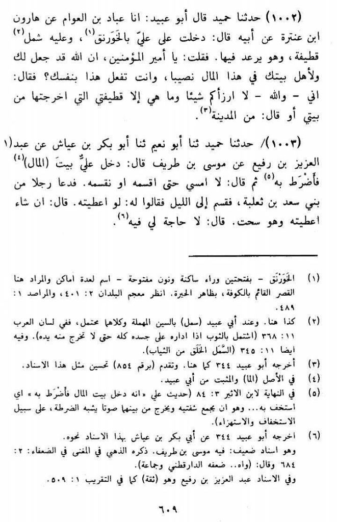 (2) Al-Amwaal — jild 1, safha 609, Hadith number 1002