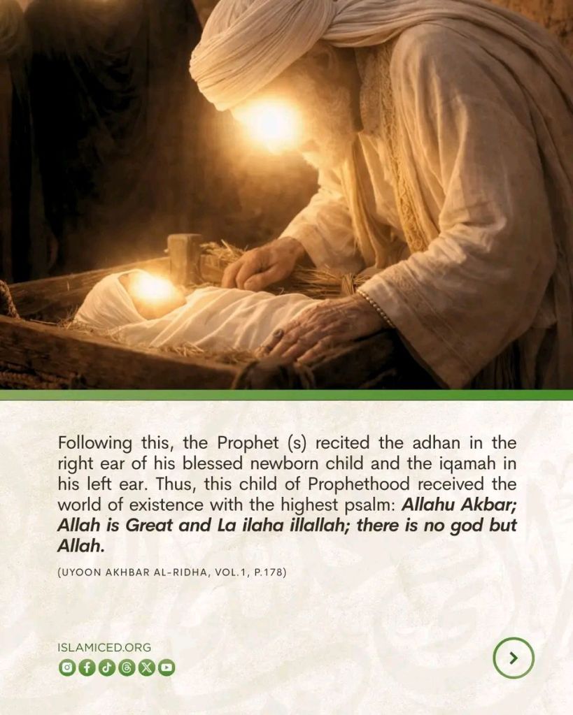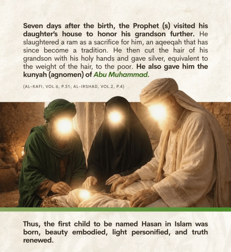 *4.* Jab Hazrat Imaam Hasan Ki Wiladat Hui To Huzoor Nabi e Kareem ﷺ Ne Aapke Kaan Me Azan Kahi.
