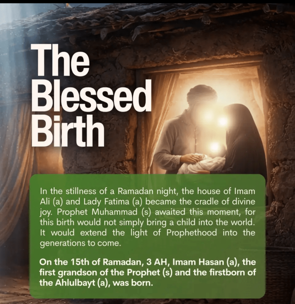 *1.* Hazrat Imaam Hasan Alahis Salam Ki Wiladat 15 Ramzan 3 Hijri Me Hui.