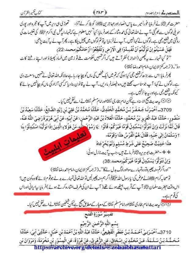 (अल-मुस्तदरक अलस-सहीहैन, जिल्द 3, किताब तफ़सीरुल क़ुरआन, हदीस: 3709)