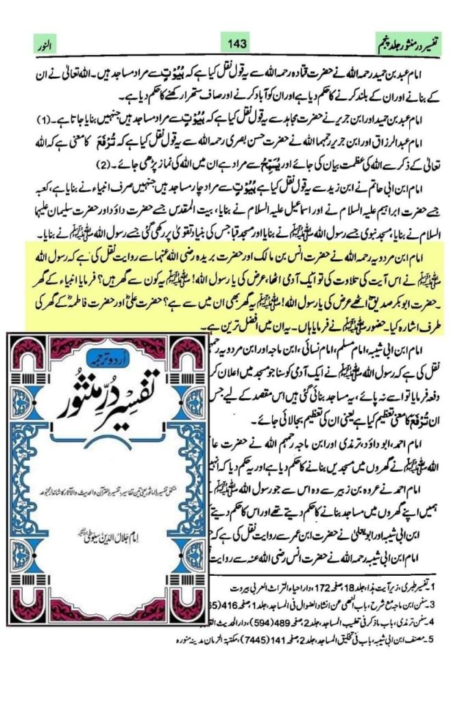 *तफ़सीर ए दुर्रे मंसूर जिल्द -5 पेज नंबर 143 (अल्लामा जलालउद्दीन सुयूति र अ)*