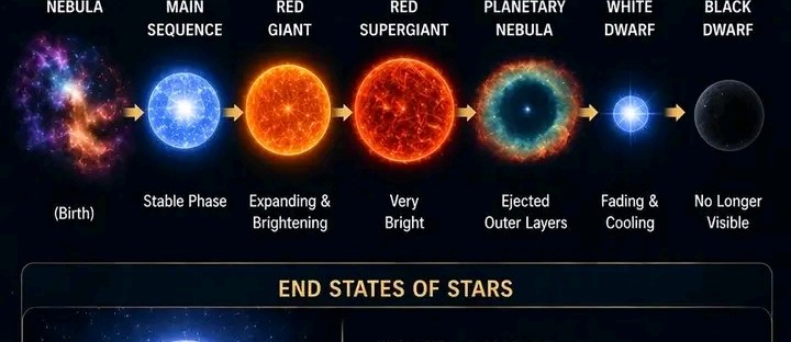 These stellar remnants emit little or no visible light, rendering them effectively invisible to the naked eye over time (28–30). This aligns conceptually with the description of stars “losing their light.”