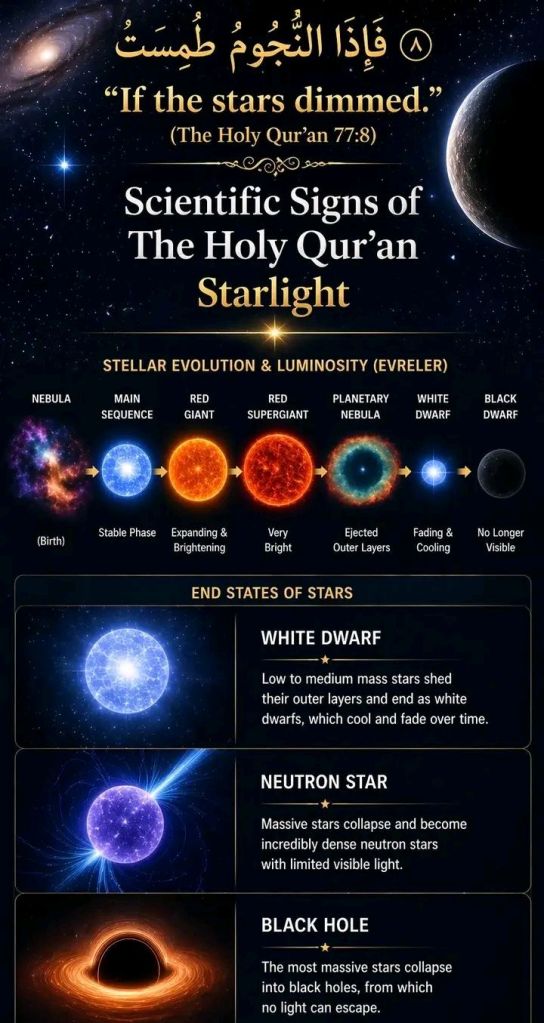 Thus, the Qur’anic expression describing stars dimming can be viewed, within a scientific framework, as consistent with the lifecycle of stars as understood today.