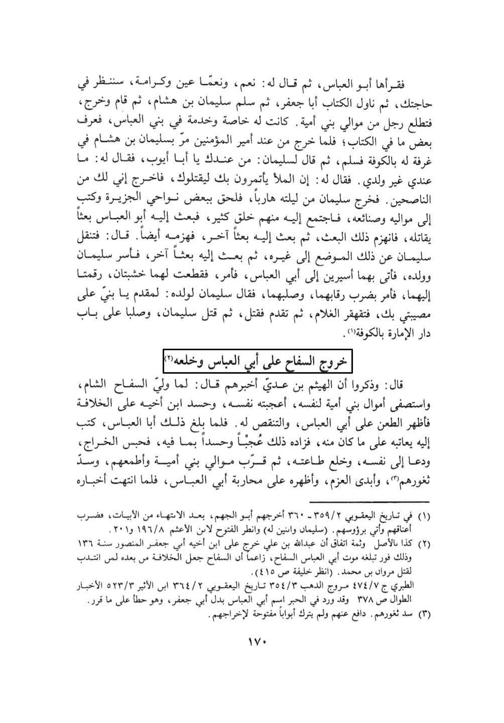 2) The author of Al Imamah Wal Siyasah made his second major blunder when he wrote a chapter titled, ” خروج السفاح على ابي العباس و خلعه“, meaning- “The disagreement between Al Saffah and Abu Abbas and its dispostion.” [See Al Imamah Wal Siyasah, Vol 2, Pg 170-171, Dar Al Adwa lit-tabiyaat wal Nasr wal Tawzi Publications, Beirut, Lebanon,
