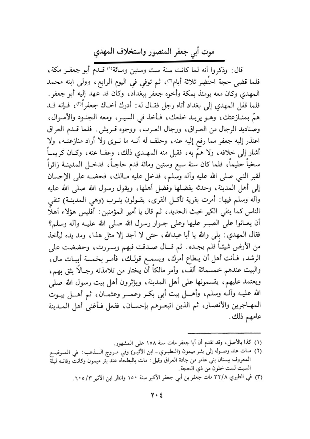 3) The third major mistake committed by the fabricator of Al Imamah was Siyasah was, he wrote a chapter named, “موت ابي حعفر المنصور واستخلاف المهدي” meaning- “Death of Abi Jafar Al Mansoor and the appointment of his successor Al Mahdi”. Then he continued to write the next chapter titled, “ذكر استخلاف هارون الرشيد”, meaning- “Discussion of his succession by Harun Al Rashid”, in which he writes