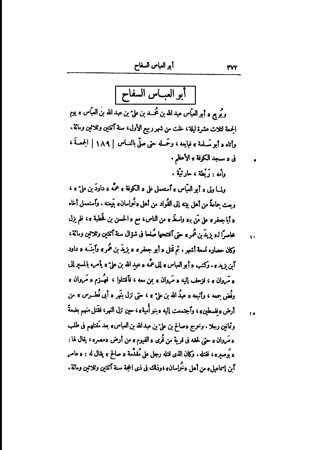 Our answer to them: Ibn Qutaybah wrote a complete chapter on, “أبو العباس السفاح” (Abul Abbas As Saffah) in his other book! [See Al Maarif, which is actually authored by Ibn Qutaybah (d.276H) and mentioned by all the biographers, vol 1, Pg 372, Al Hayyat Al Misriyat Publications, Cairo, Egypt].