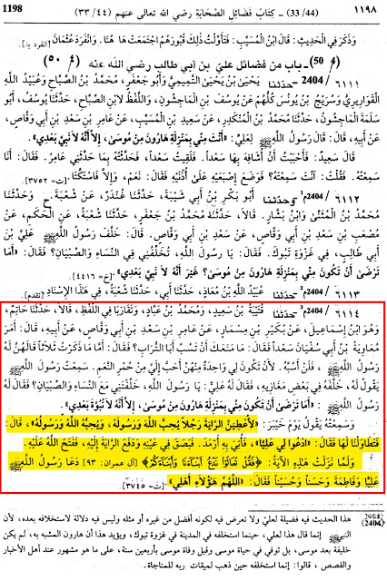 (Sahi Muslim, Vol : 06, Pg : 267, Kitabul Manakib E Sahaba, Baab : Man Fazail E Ali Ibn Abu Talib, Hadees : 6225 “English No : 2408”)(Imam Ahmad Ibn Hambal Al Musnad Vol : 04, Pg : 366, Hadees :19265)(Imam Ibn Hibban Sahi Ibn Hibban Vol : 01, Pg : 145, Hadees : 123)(Imam Ibn Khuzaymah Sahi ibn Khuzaymah Vol : 04, Pg : 62, Hadees : 2357)