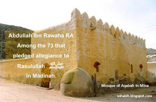Abdullah ibn Rawaahah RA was one of the twelve representatives of the Ansar who took an oath of allegiance initially, before the Hijrah and later spread Islam to Madinah. Also he was among the 73 that pledged allegiance to Rasulullah ﷺ in Madinah.