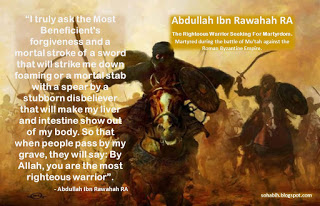 ‘Abdullah ibn Rawaha RA was also the most alert Muslim to the plots of ‘Abdullah ibn Ubay whom the people of Al-Madinah were about to crown king before the Muslims arrived.