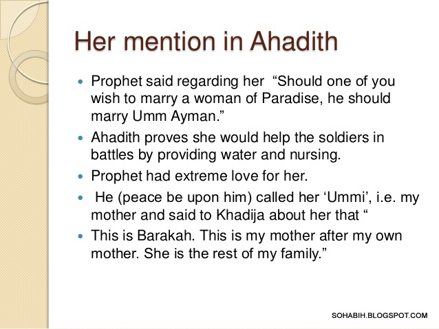 But Barakah RA (Umm Aiman) was blessed to be treated with kindness.